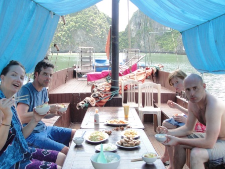 Then heading to Cat Ba island in the famous Halong Bay...and now I know why it is famous: wonderful !! 2 days on a junk boat and 1 night on the deck sleeping with stars :-) I made 2 nice dutch friends on the way, Merel and Daan, whith who I shared quite a few adventures in Cat Ba...