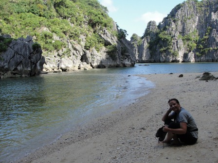 And...to be faithful to my personality (you know...extreme sports!) I did some climbing on the rocks of Halong Bay, above a desert beach...my eyes remember the scenery (my fingers remember the rocks !!).